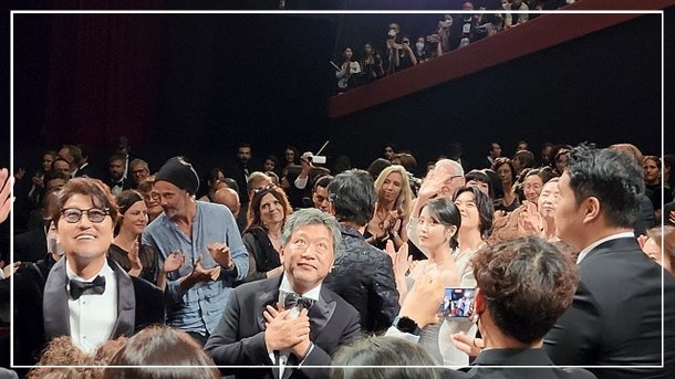 영화 상영 후 엔딩 크레디트가 올라갈 무렵부터 환호와 함께 박수가 터져 나왔습니다. 영화제 측이 엔딩 크레디트가 다 올라가지 않은 상태에서 극장 실내 조명을 켤 정도로 관객의 호응은 뜨거웠습니다. 기립박수는 10분 넘게 이어졌습니다. 스크린으로 배우들의 모습이 하나하나 클로즈업될 때마다 환호가 나왔습니다. 고레에다 감독은 “티에리 프리모 (칸영화제) 집행위원장이 서스펜스를 잘 만들어(긴장되는 자리로 초청했다는 의미) 식은땀이 막 났다”며 “코로나19 기간 동안 영화를 찍느라 힘들었는데, 영화를 여러분과 함께 정상적으로 나눌 수 있어 너무 기쁘고 감사하다”고 말했습니다.